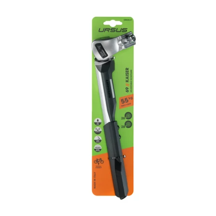 La béquille centrale Ursus Kaiser 69 est un accessoire indispensable pour s’arrêter à vélo. Surtout lorsque son vélo est lourd ou chargé puisqu’elle assure la stabilité du vélo à l’arrêt jusqu’à 55kg.